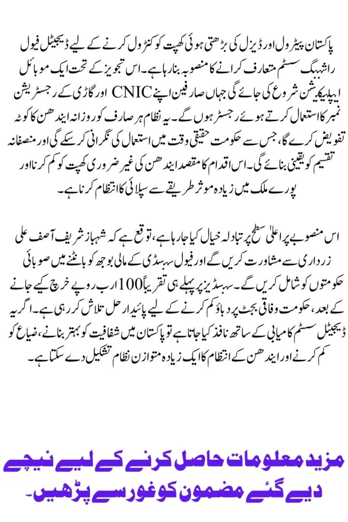 The introduction of a digital fuel quota system represents a major shift in how petroleum products are managed in Pakistan. If implemented effectively, it could improve transparency, reduce wastage, and ensure fair access for all consumers.